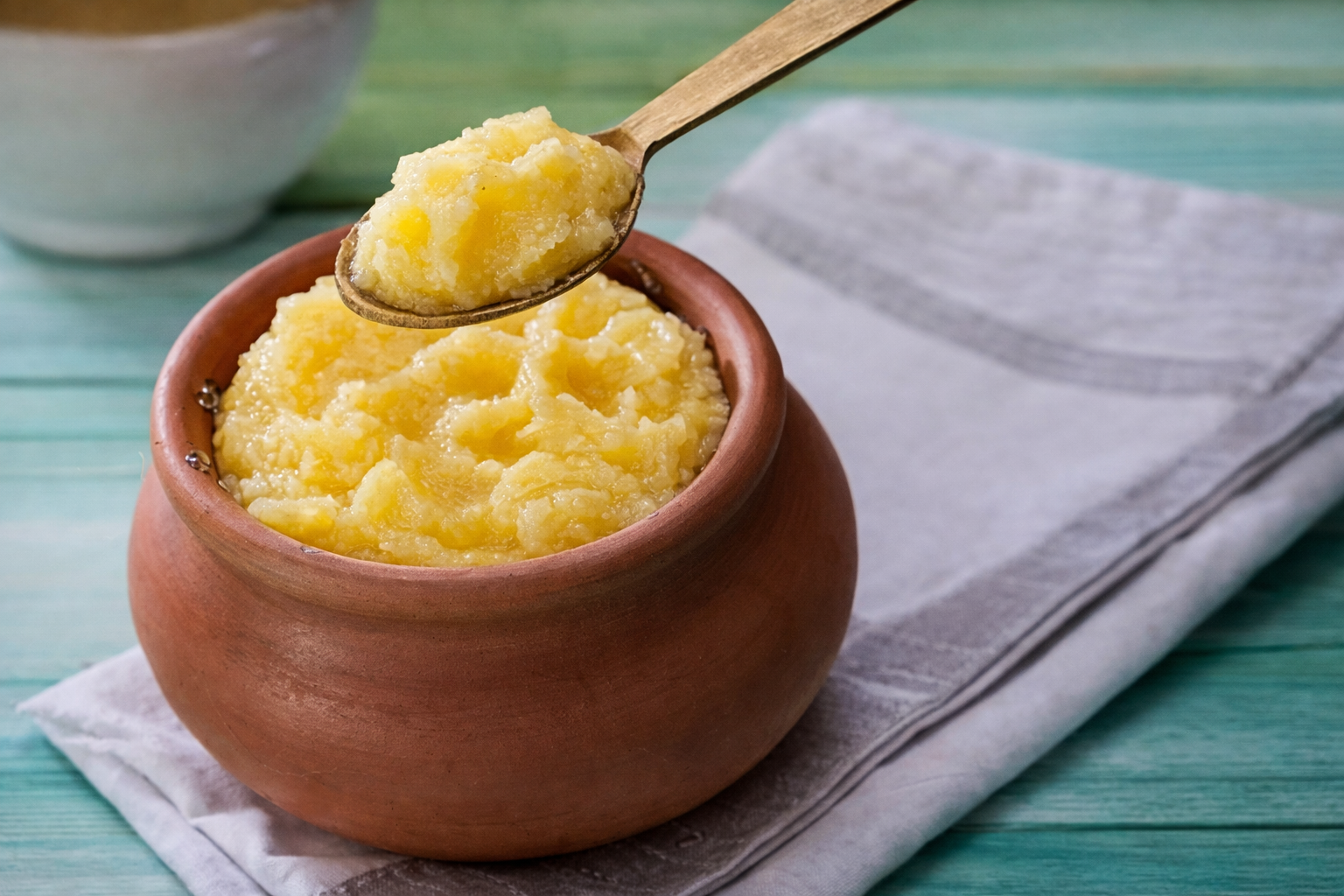 Export-grade A2 cow ghee produced using the traditional bilona method, ensuring high purity, rich aroma, and natural grain structure suitable for regulated international markets.