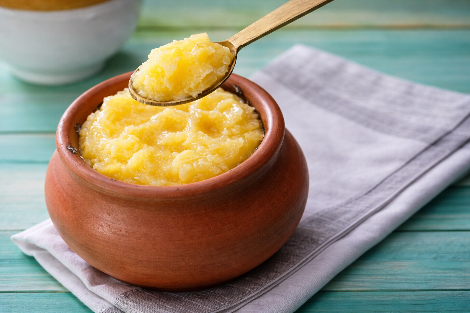 Export-grade A2 cow ghee produced using the traditional bilona method, ensuring high purity, rich aroma, and natural grain structure suitable for regulated international markets.